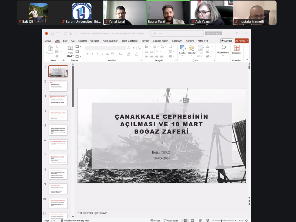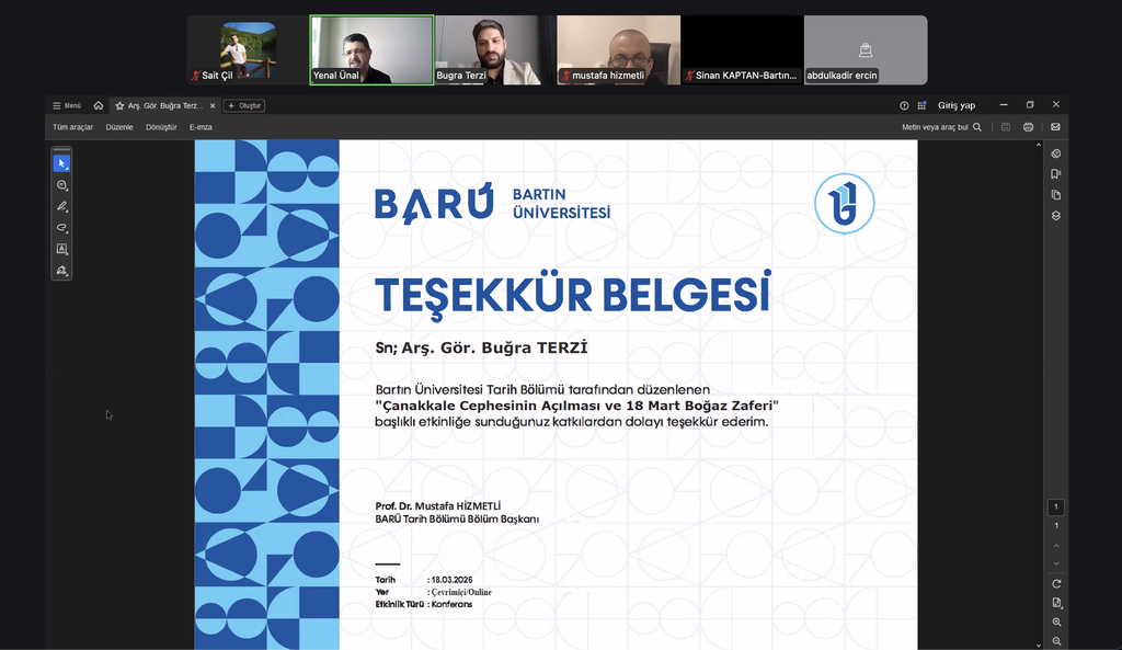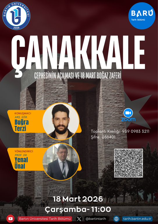 The conference titled “The Opening of the Gallipoli Front and the March 18 Naval Victory,” delivered by Buğra Terzi from Çanakkale Onsekizmart University, took place on March 18, 2026, under the moderation of Prof. Yenal Ünal.