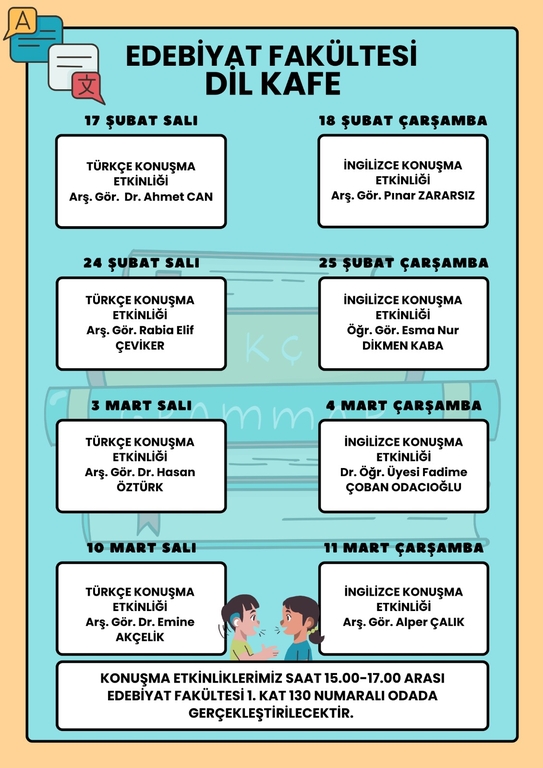 Language Café sessions will be held throughout February and March to support Turkish and English language practice.